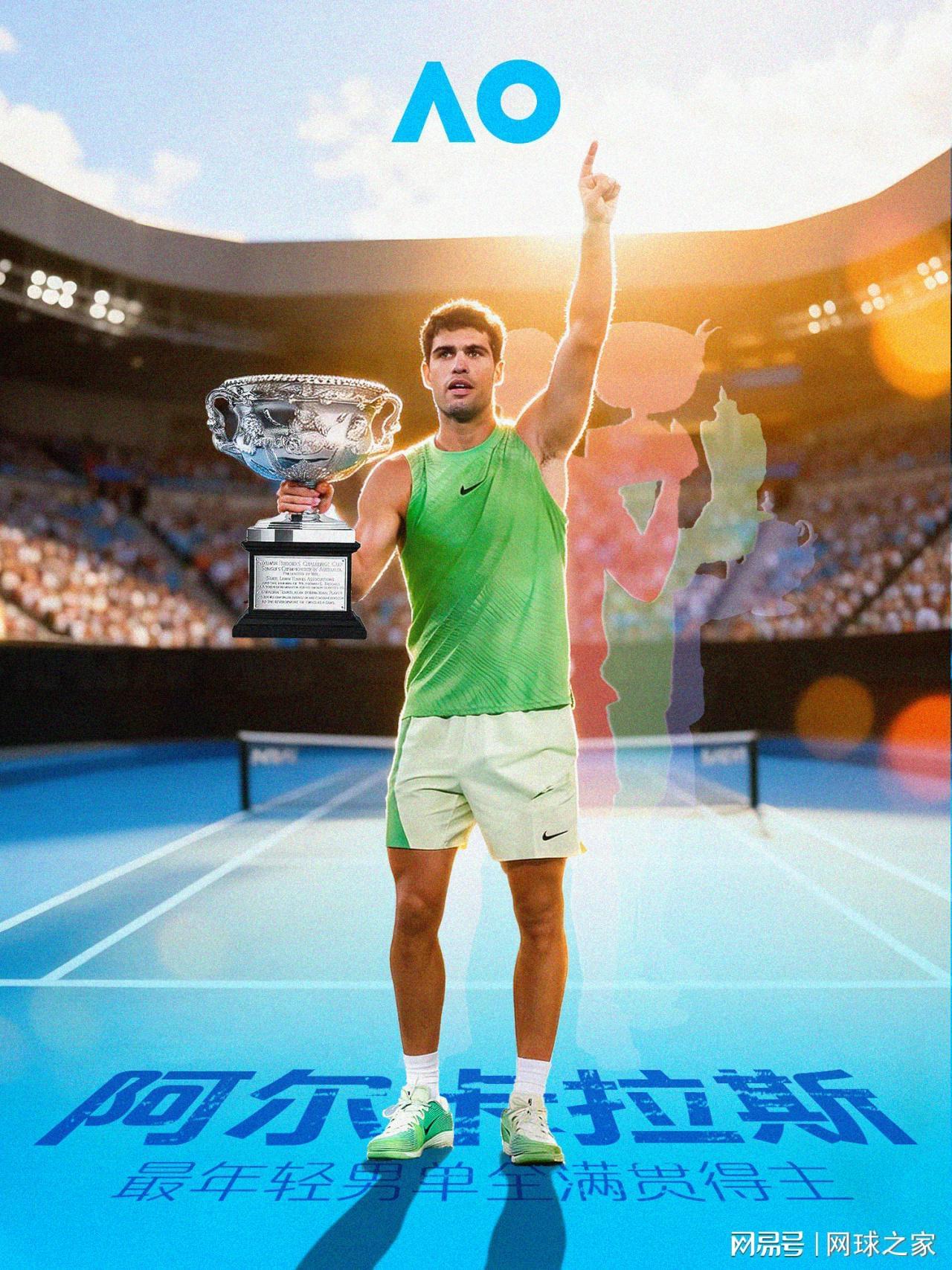 昨天晚上,阿尔卡拉斯四盘战胜德约科维奇,夺得了澳网冠军,成为史上最年轻的全满贯球员。